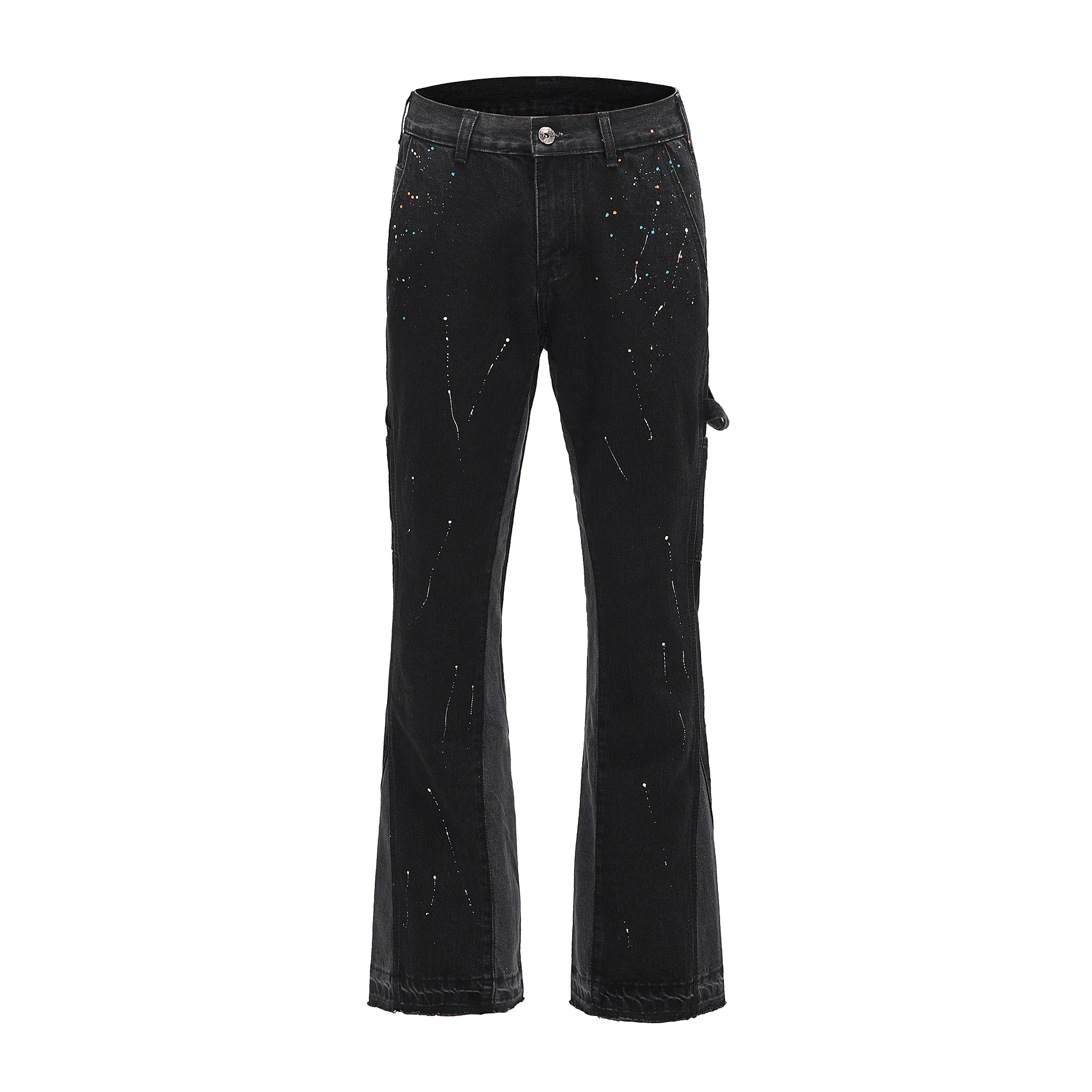 The patchwork ink splashing design adds a unique touch, making these jeans suitable for various occasions.