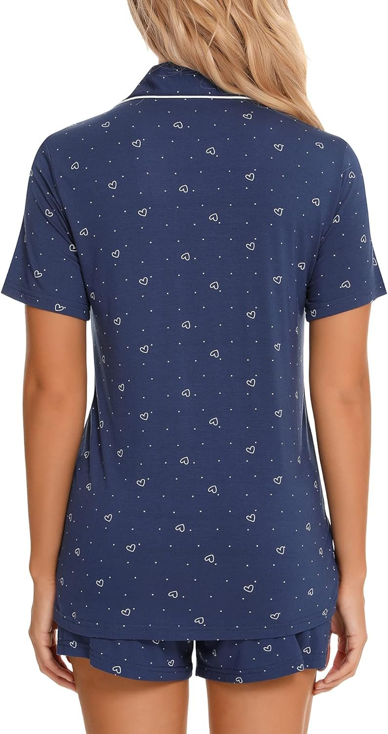 Womens Pajamas Set Short Sleeve Sleepwear Button down Nightwear Shorts Soft Pj Sets S-XXL